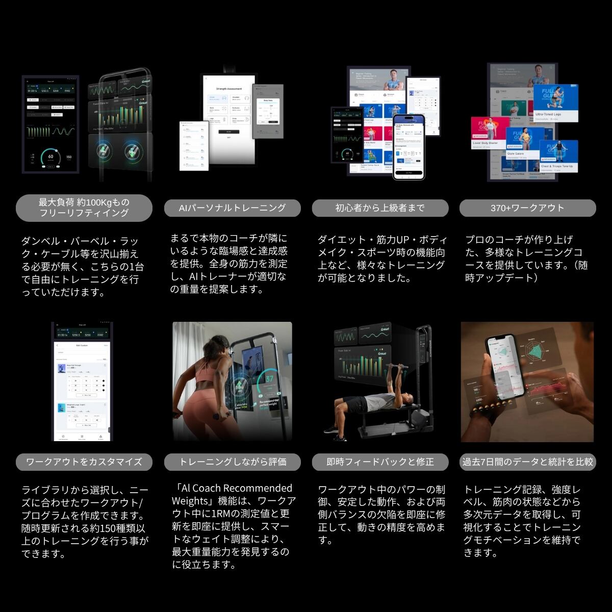最新テクノロジーが組み込まれた最先端のAIパーソナルホームジムマシンです。