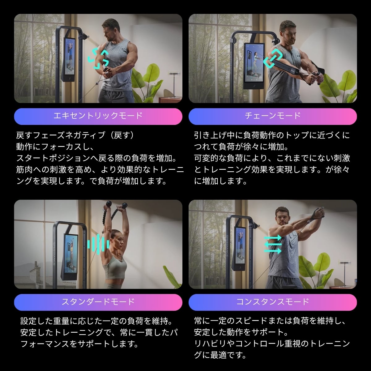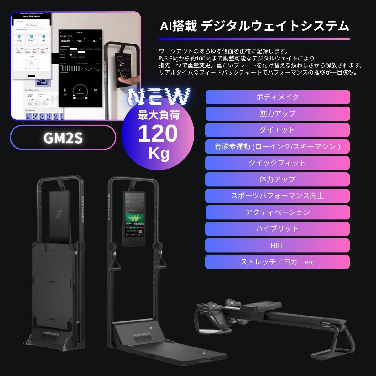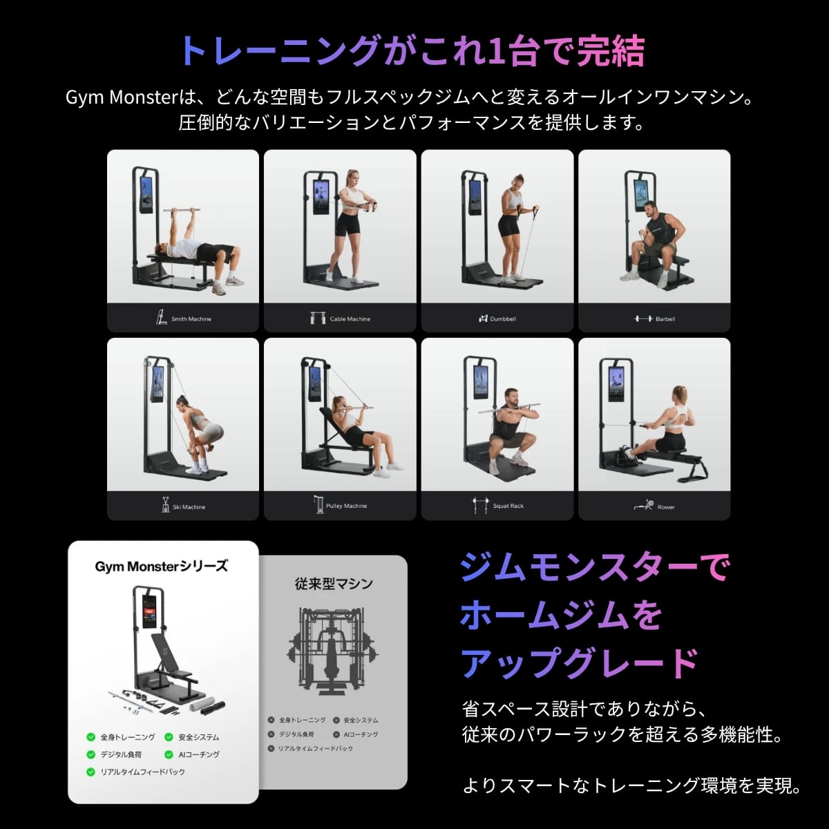 最新テクノロジーが組み込まれた最先端のAIパーソナルホームジムマシンです。